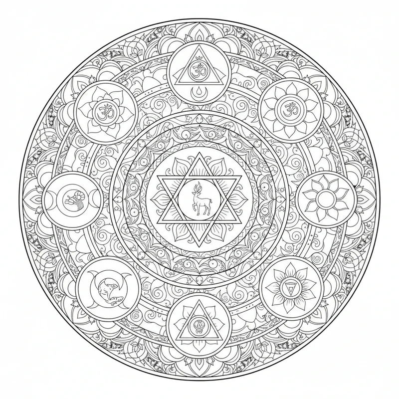 Entdecken Sie dieses wunderschöne Chakra Mandala Mandala zum Ausmalen. Ein einzigartiges Design inspiriert vom Thema Chakra Mandala, perfekt zum Stressabbau und zur Förderung der Kreativität.