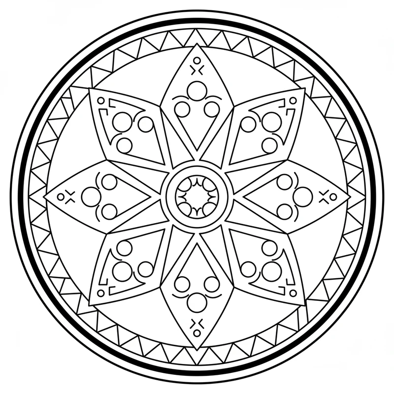Drucken Sie diese Mandala-Malvorlage kostenlos aus und genießen Sie einen Moment der Ruhe und Konzentration. Ideal für Erwachsene und Kinder, die eine entspannende künstlerische Aktivität suchen.