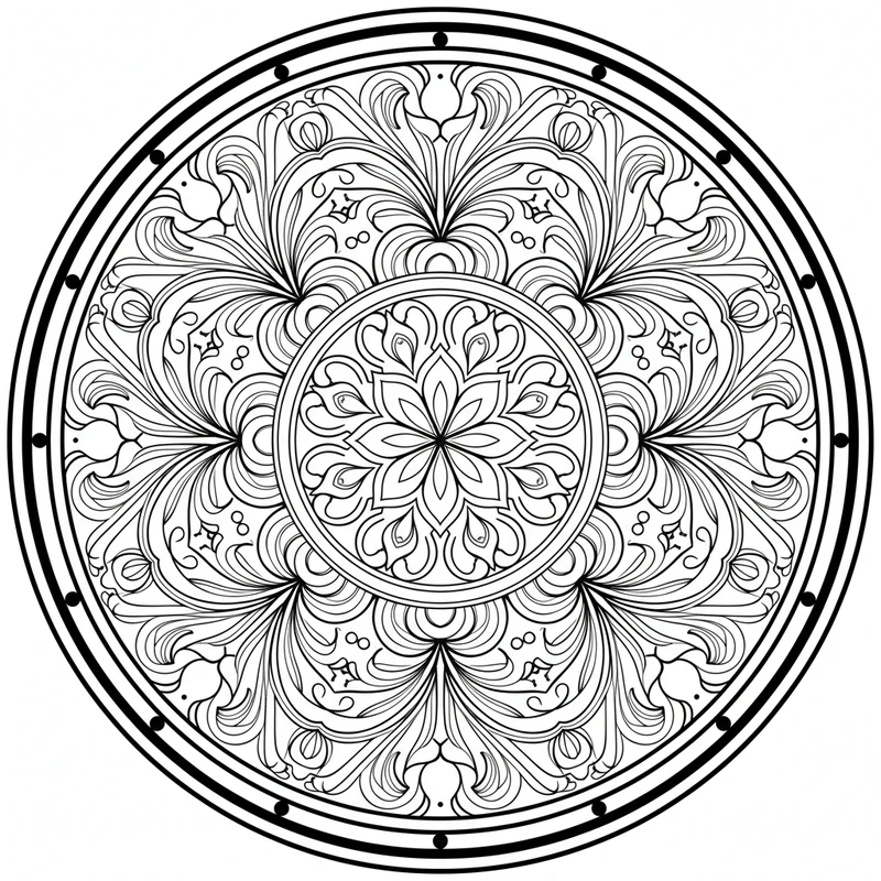 Drucken Sie diese Mandala-Malvorlage kostenlos aus und genießen Sie einen Moment der Ruhe und Konzentration. Ideal für Erwachsene und Kinder, die eine entspannende künstlerische Aktivität suchen.