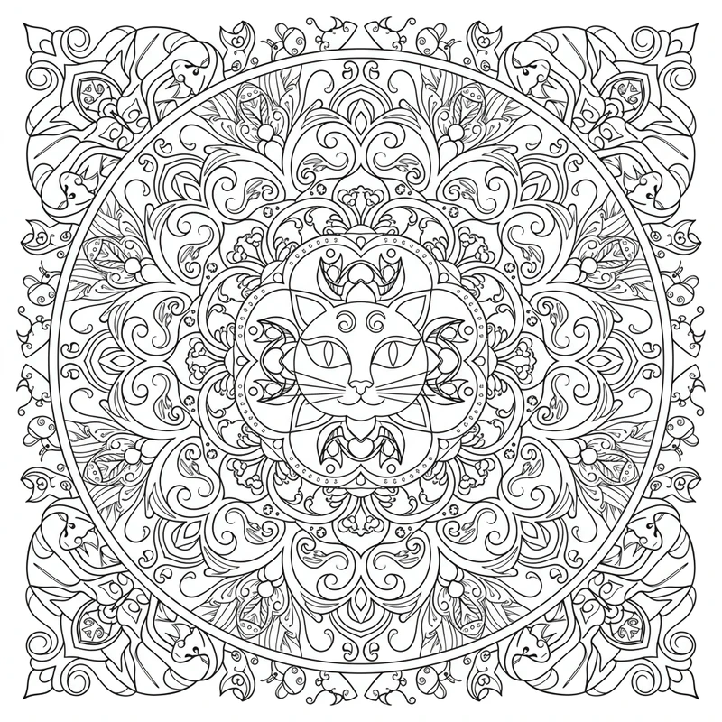 Entdecken Sie dieses wunderschöne Katzen Mandala Mandala zum Ausmalen. Ein einzigartiges Design inspiriert vom Thema Katzen Mandala, perfekt zum Stressabbau und zur Förderung der Kreativität.