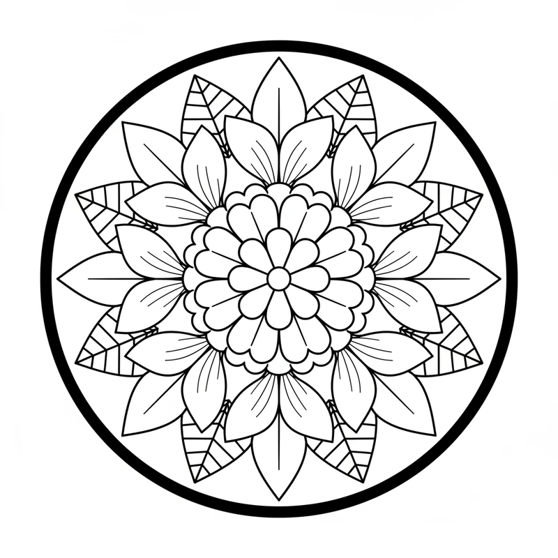 Drucken Sie diese Mandala-Malvorlage kostenlos aus und genießen Sie einen Moment der Ruhe und Konzentration. Ideal für Erwachsene und Kinder, die eine entspannende künstlerische Aktivität suchen.