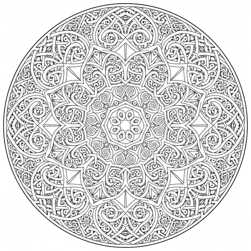 An abstract mandala that pushes the boundaries of creativity. Inspired by zentangle style and decorative arts, this design offers total freedom in color choice and coloring techniques.