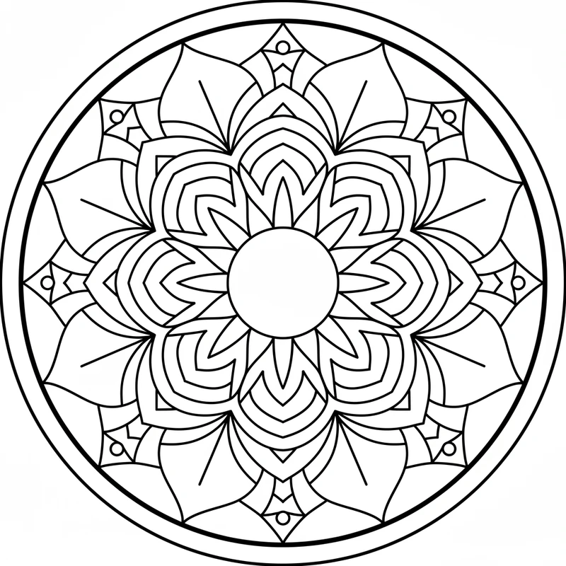 A beautiful simple mandala with accessible patterns, designed to offer a moment of calm and creativity. Basic geometric shapes create a soothing visual harmony, perfect for a relaxing break after a busy day.