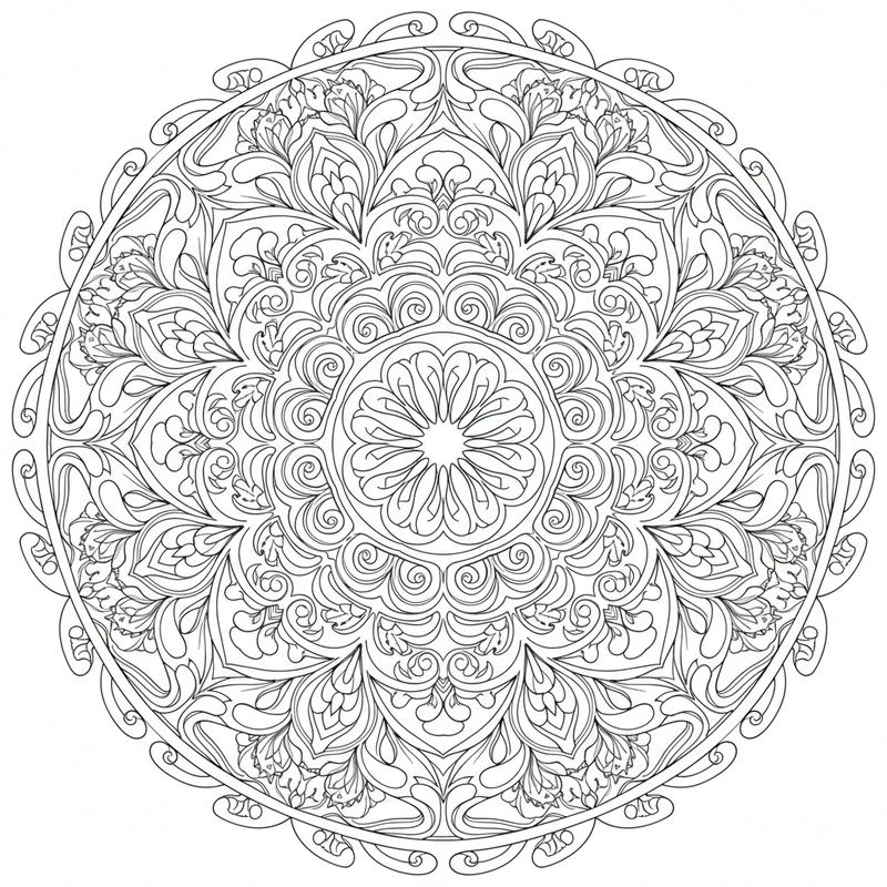 This unique design transcends traditional mandala categories. Each area is an invitation to chromatic experimentation. Download this free coloring page and create your own artistic interpretation.