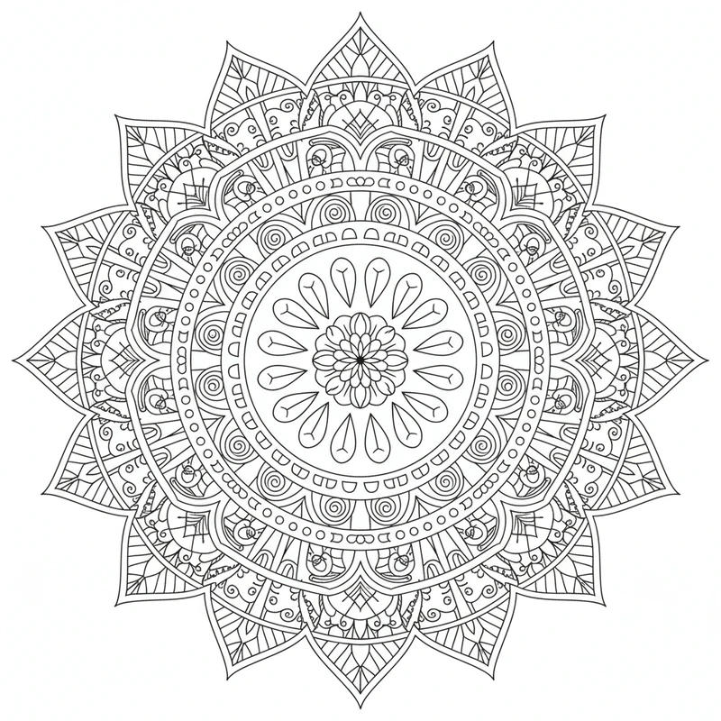 An abstract mandala that pushes the boundaries of creativity. Inspired by zentangle style and decorative arts, this design offers total freedom in color choice and coloring techniques.