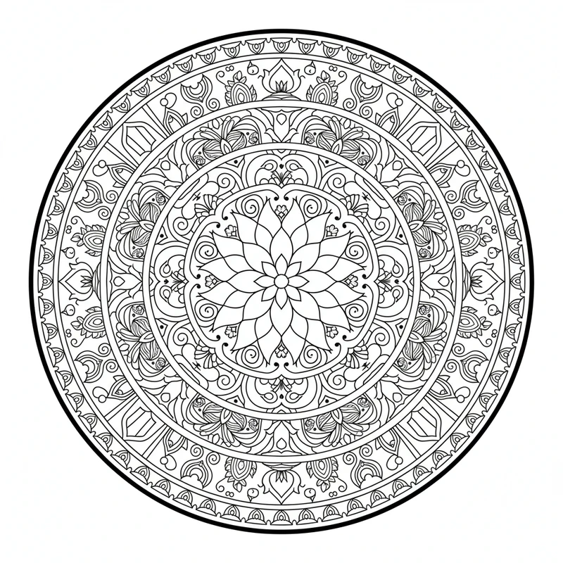 Descubre este hermoso mandala indio para colorear. Un diseño único inspirado en el tema indio, perfecto para reducir el estrés y estimular la creatividad.