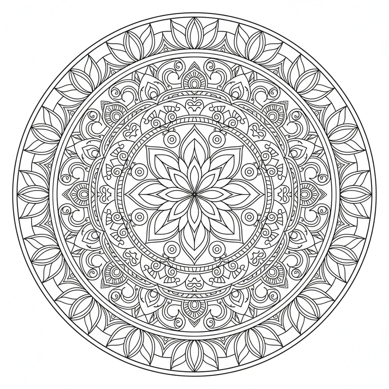Imprime gratis esta página de colorear mandala y disfruta de un momento de paz y concentración. Ideal para adultos y niños que buscan una actividad artística relajante.