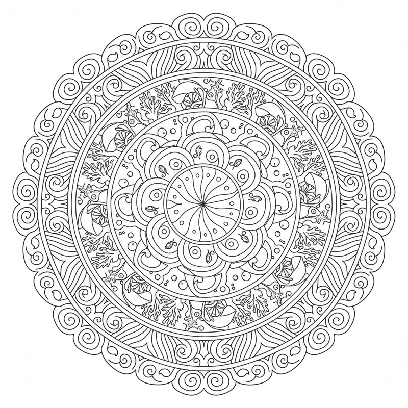 Océano Mandala #3 - Página para Colorear Gratis