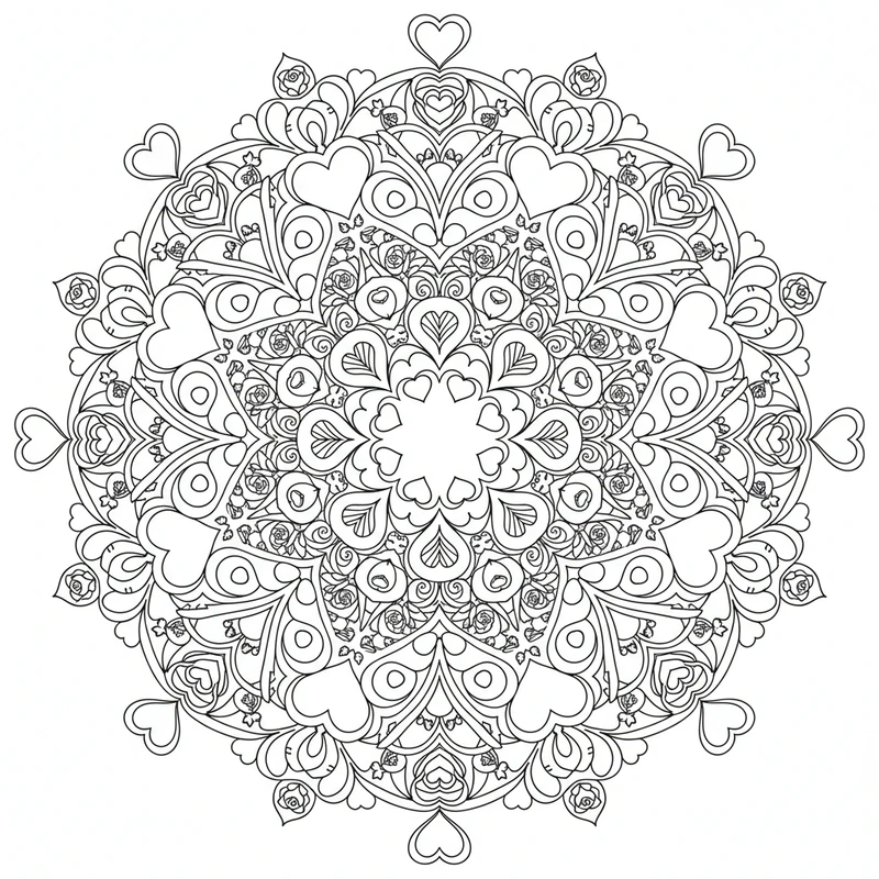 Descubre este hermoso mandala san valentín para colorear. Un diseño único inspirado en el tema san valentín, perfecto para reducir el estrés y estimular la creatividad.