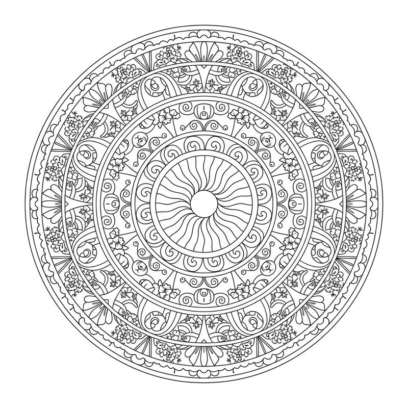 Imprime gratis esta página de colorear mandala y disfruta de un momento de paz y concentración. Ideal para adultos y niños que buscan una actividad artística relajante.