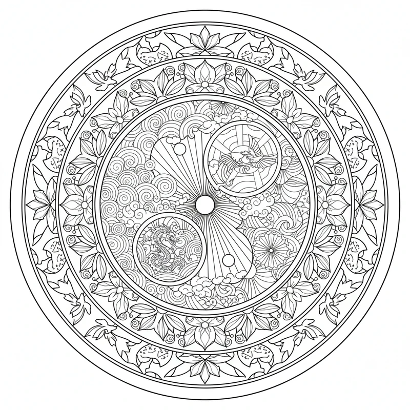 Descubre este hermoso mandala yin yang para colorear. Un diseño único inspirado en el tema yin yang, perfecto para reducir el estrés y estimular la creatividad.