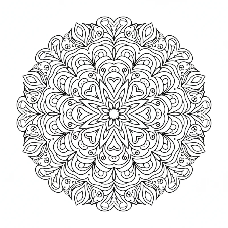 Scopri questo bellissimo mandala da colorare a tema mandala coeur. Un design unico che unisce arte e relax, perfetto per ridurre lo stress e stimolare la creatività.