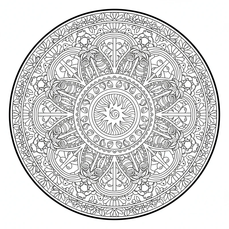 Scopri questo bellissimo mandala estate da colorare. Un design unico ispirato al tema estate, perfetto per ridurre lo stress e stimolare la creatività.
