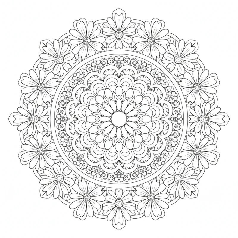Fiore Mazzo Mandala #26 - Pagina da Colorare Gratuita