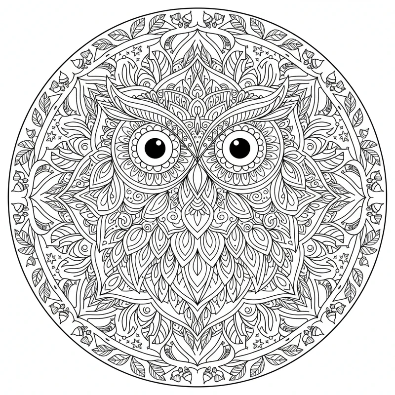 Scopri questo bellissimo mandala gufo da colorare. Un design unico ispirato al tema gufo, perfetto per ridurre lo stress e stimolare la creatività.