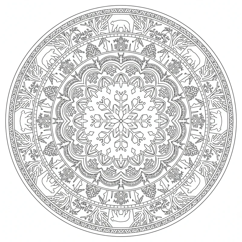 Scopri questo bellissimo mandala inverno da colorare. Un design unico ispirato al tema inverno, perfetto per ridurre lo stress e stimolare la creatività.