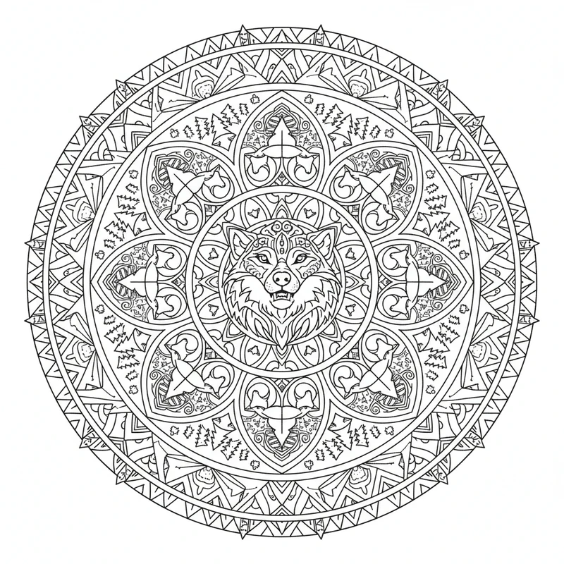 Lupo Mandala #15 - Pagina da Colorare Gratuita