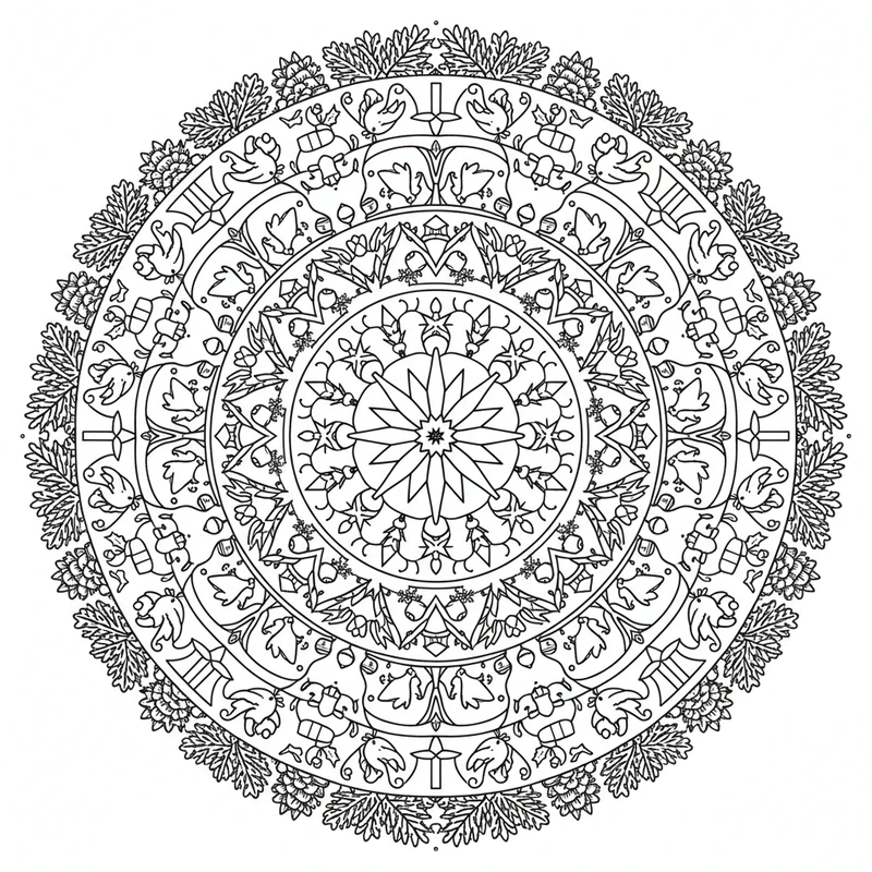 Scopri questo bellissimo mandala natale da colorare. Un design unico ispirato al tema natale, perfetto per ridurre lo stress e stimolare la creatività.