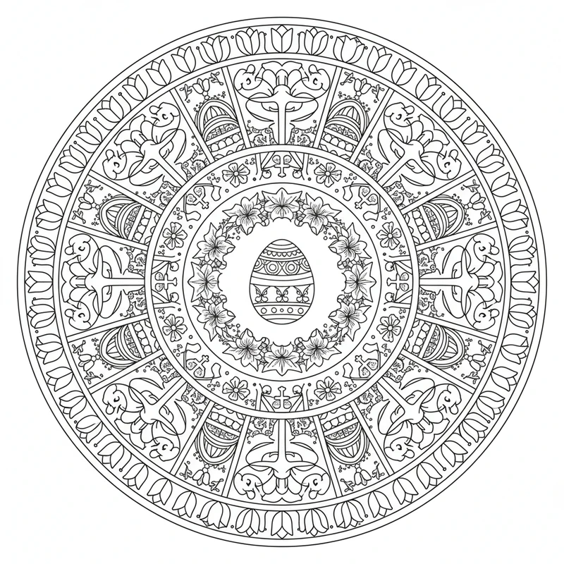 Pasqua Mandala #19 - Pagina da Colorare Gratuita