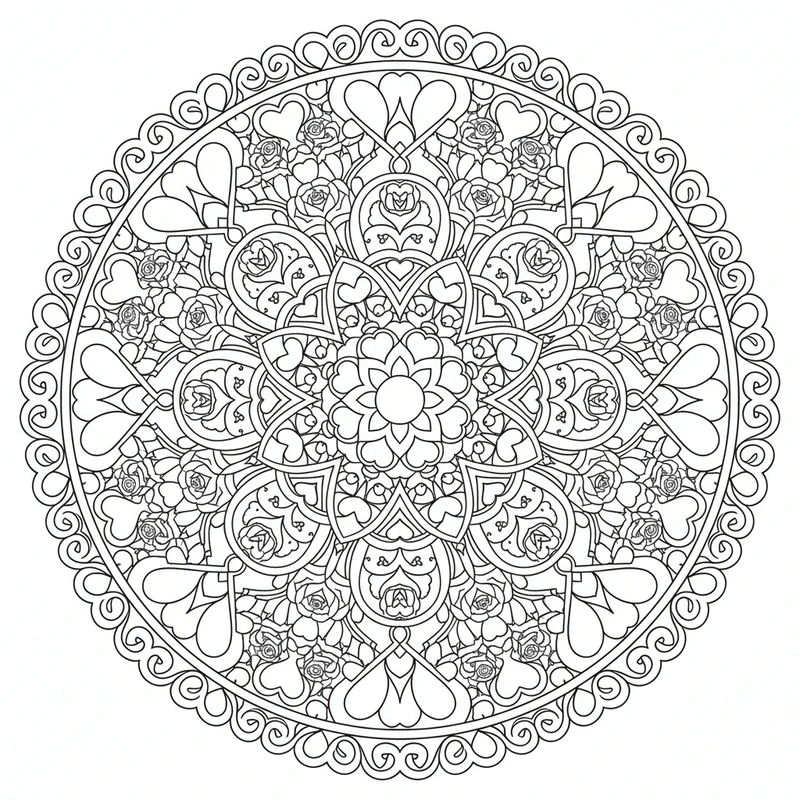 Scopri questo bellissimo mandala san valentino da colorare. Un design unico ispirato al tema san valentino, perfetto per ridurre lo stress e stimolare la creatività.