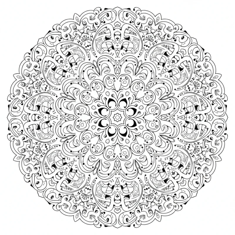 Un mandala abstrait qui repousse les limites de la créativité. Inspiré du style zentangle et des arts décoratifs, ce design offre une liberté totale dans le choix des couleurs et des techniques de coloriage.