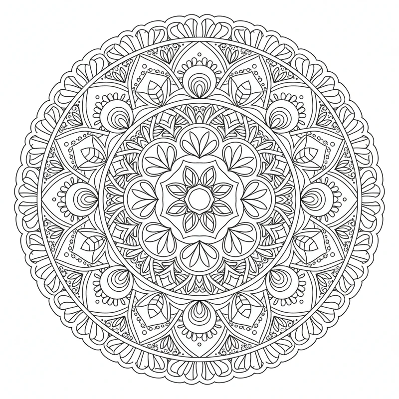 Un mandala abstrait qui repousse les limites de la créativité. Inspiré du style zentangle et des arts décoratifs, ce design offre une liberté totale dans le choix des couleurs et des techniques de coloriage.