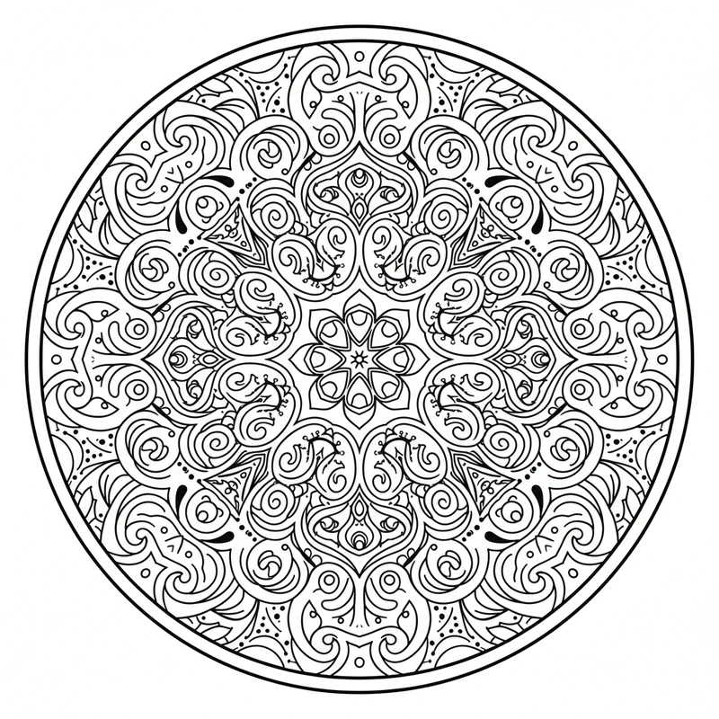 Explorez l'art abstrait avec ce mandala aux motifs créatifs et originaux. Courbes fluides et formes organiques s'entremêlent dans une composition libre qui stimule l'imagination et la créativité.