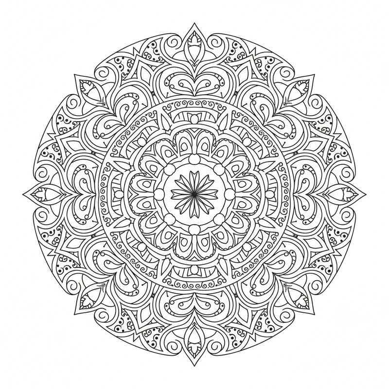 Un mandala abstrait qui repousse les limites de la créativité. Inspiré du style zentangle et des arts décoratifs, ce design offre une liberté totale dans le choix des couleurs et des techniques de coloriage.