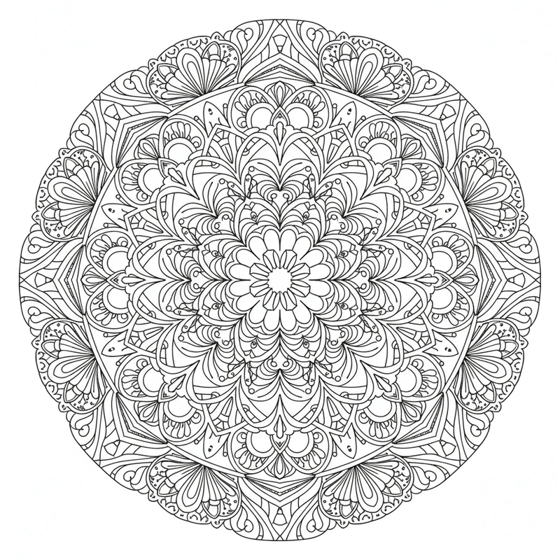 Ce design unique transcende les catégories traditionnelles du mandala. Chaque zone est une invitation à l'expérimentation chromatique. Téléchargez gratuitement ce coloriage et créez votre propre interprétation artistique.