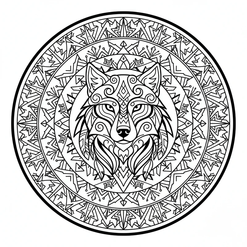 Mandala Loup Tribal #37 - Coloriage Gratuit