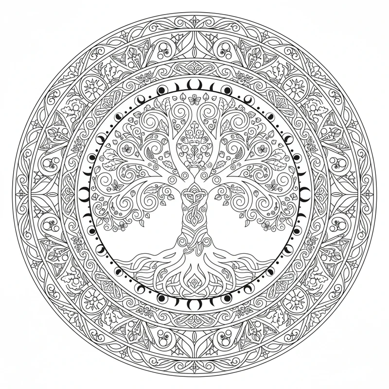 Découvrez ce magnifique mandala arbre de vie à colorier. Un design unique inspiré du thème arbre de vie, parfait pour un moment de détente et de créativité. Les motifs soigneusement élaborés offrent une expérience de coloriage apaisante.