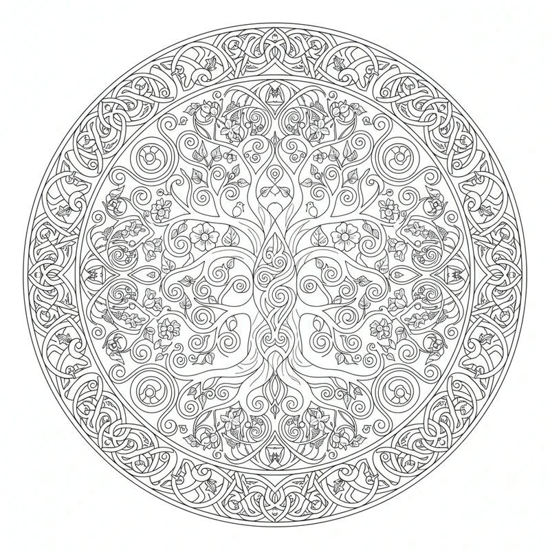 Découvrez ce magnifique mandala arbre de vie à colorier. Un design unique inspiré du thème arbre de vie, parfait pour un moment de détente et de créativité. Les motifs soigneusement élaborés offrent une expérience de coloriage apaisante.