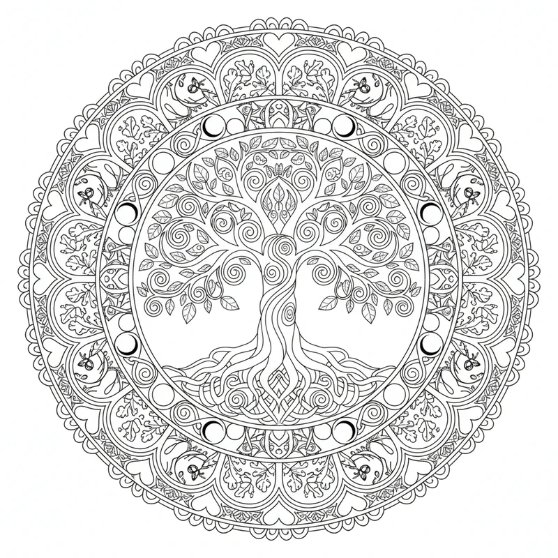 Découvrez ce magnifique mandala arbre de vie à colorier. Un design unique inspiré du thème arbre de vie, parfait pour un moment de détente et de créativité. Les motifs soigneusement élaborés offrent une expérience de coloriage apaisante.