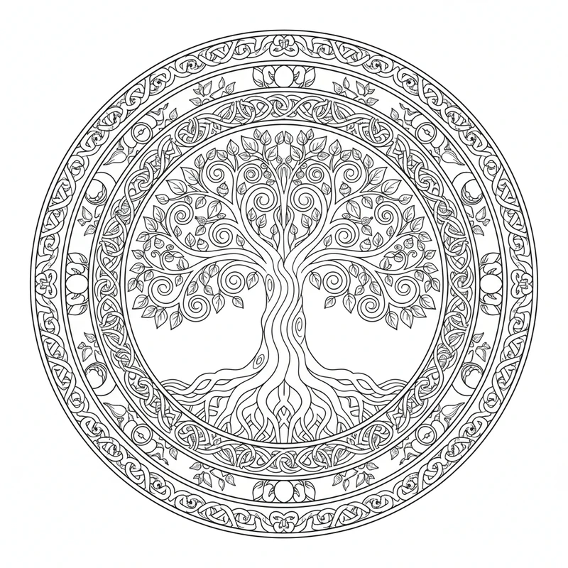 Découvrez ce magnifique mandala arbre de vie à colorier. Un design unique inspiré du thème arbre de vie, parfait pour un moment de détente et de créativité. Les motifs soigneusement élaborés offrent une expérience de coloriage apaisante.