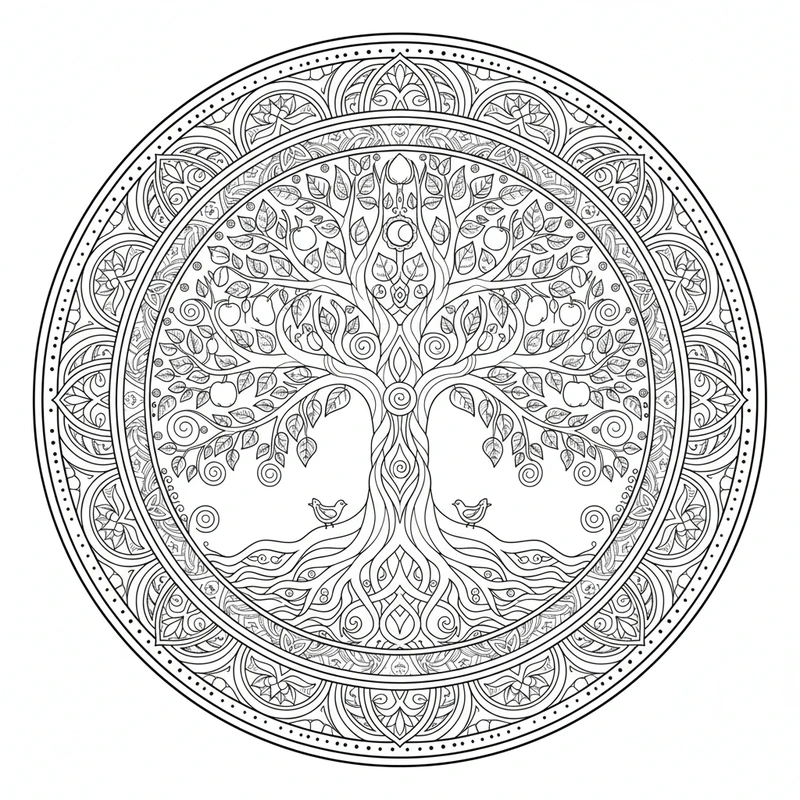 Découvrez ce magnifique mandala arbre de vie à colorier. Un design unique inspiré du thème arbre de vie, parfait pour un moment de détente et de créativité. Les motifs soigneusement élaborés offrent une expérience de coloriage apaisante.