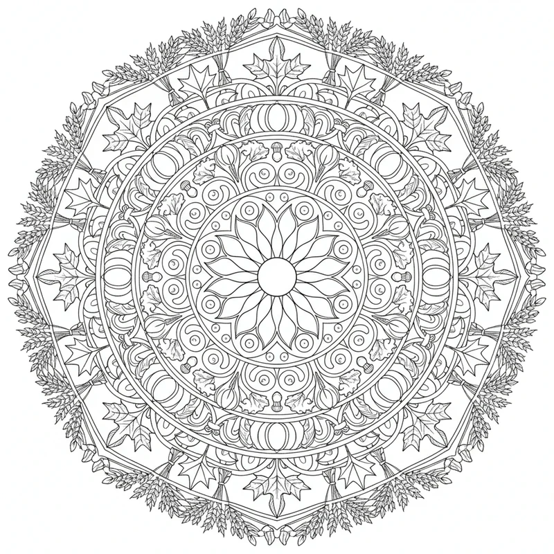 Ce mandala automne est idéal pour réduire le stress et stimuler votre imagination. Téléchargez gratuitement ce coloriage et laissez-vous transporter par la beauté de ce design automne. Parfait pour adultes et enfants.