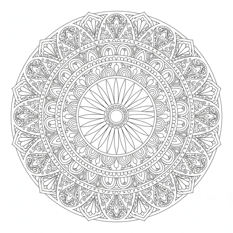 Un mandala abstrait qui repousse les limites de la créativité. Inspiré du style zentangle et des arts décoratifs, ce design offre une liberté totale dans le choix des couleurs et des techniques de coloriage.