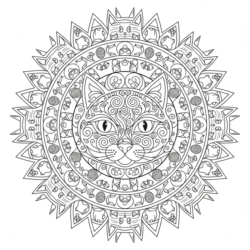 Découvrez ce magnifique mandala chat à colorier. Un design unique inspiré du thème chat, parfait pour un moment de détente et de créativité. Les motifs soigneusement élaborés offrent une expérience de coloriage apaisante.