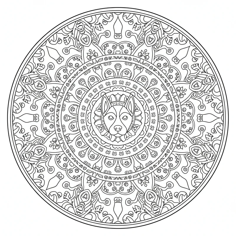Découvrez ce magnifique mandala chien à colorier. Un design unique inspiré du thème chien, parfait pour un moment de détente et de créativité. Les motifs soigneusement élaborés offrent une expérience de coloriage apaisante.