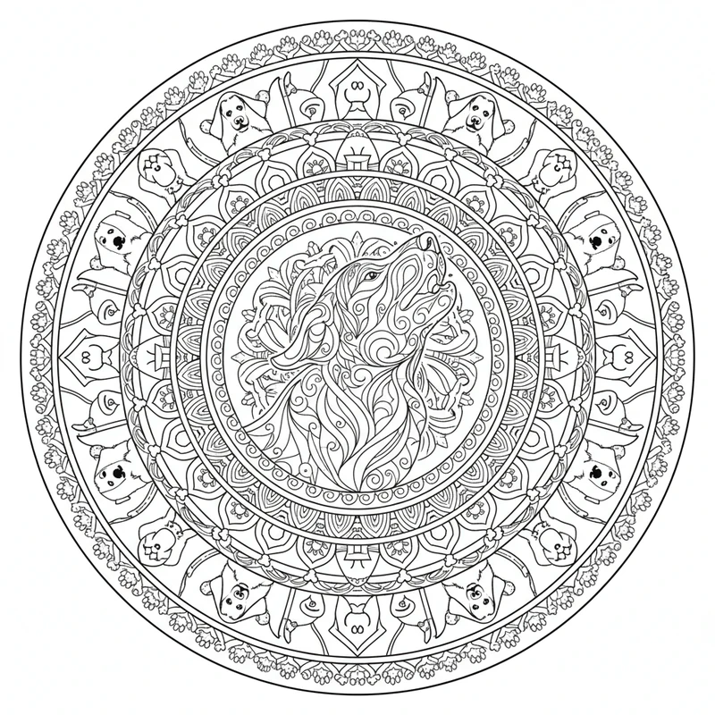 Découvrez ce magnifique mandala chien à colorier. Un design unique inspiré du thème chien, parfait pour un moment de détente et de créativité. Les motifs soigneusement élaborés offrent une expérience de coloriage apaisante.