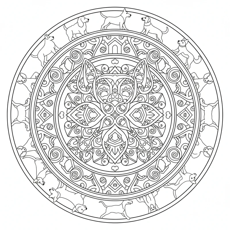Découvrez ce magnifique mandala chien à colorier. Un design unique inspiré du thème chien, parfait pour un moment de détente et de créativité. Les motifs soigneusement élaborés offrent une expérience de coloriage apaisante.