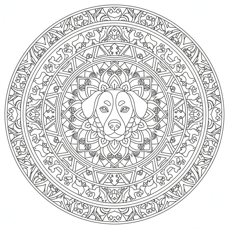 Découvrez ce magnifique mandala chien à colorier. Un design unique inspiré du thème chien, parfait pour un moment de détente et de créativité. Les motifs soigneusement élaborés offrent une expérience de coloriage apaisante.