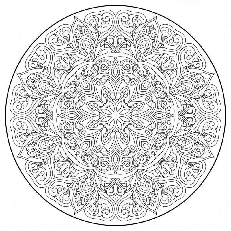 Un mandala abstrait qui repousse les limites de la créativité. Inspiré du style zentangle et des arts décoratifs, ce design offre une liberté totale dans le choix des couleurs et des techniques de coloriage.