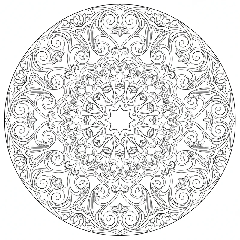 Un mandala abstrait qui repousse les limites de la créativité. Inspiré du style zentangle et des arts décoratifs, ce design offre une liberté totale dans le choix des couleurs et des techniques de coloriage.