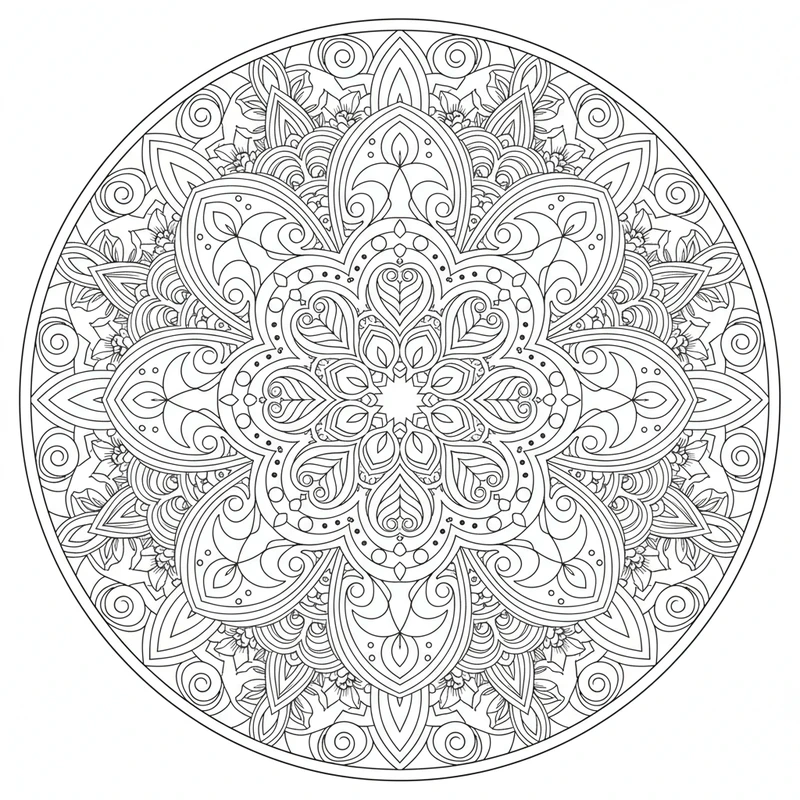 Un mandala abstrait qui repousse les limites de la créativité. Inspiré du style zentangle et des arts décoratifs, ce design offre une liberté totale dans le choix des couleurs et des techniques de coloriage.