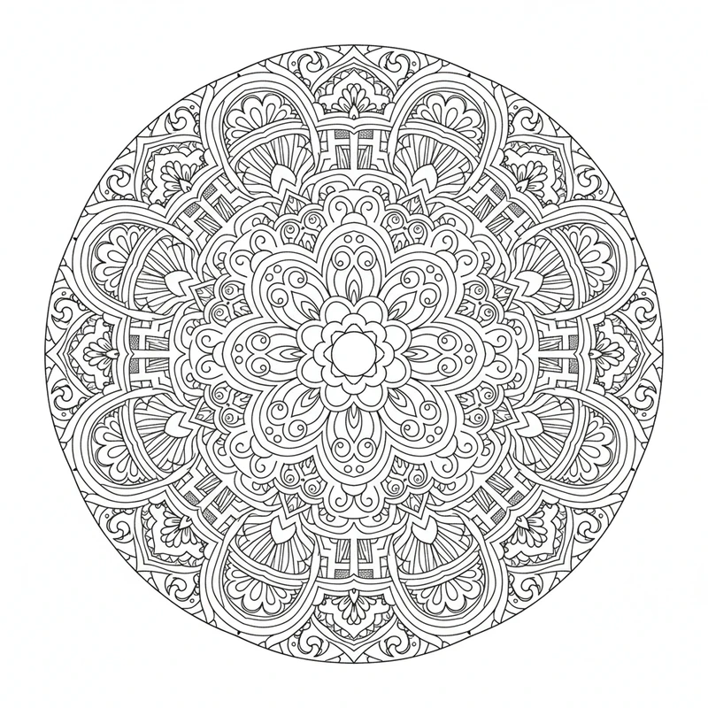 Un mandala abstrait qui repousse les limites de la créativité. Inspiré du style zentangle et des arts décoratifs, ce design offre une liberté totale dans le choix des couleurs et des techniques de coloriage.