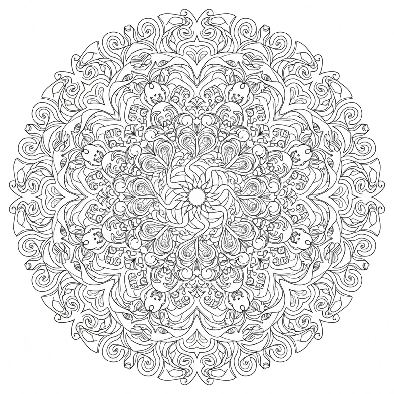 Un mandala abstrait qui repousse les limites de la créativité. Inspiré du style zentangle et des arts décoratifs, ce design offre une liberté totale dans le choix des couleurs et des techniques de coloriage.