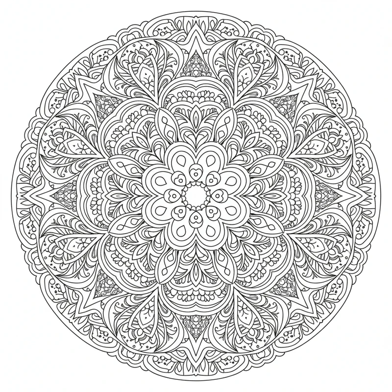 Ce design unique transcende les catégories traditionnelles du mandala. Chaque zone est une invitation à l'expérimentation chromatique. Téléchargez gratuitement ce coloriage et créez votre propre interprétation artistique.
