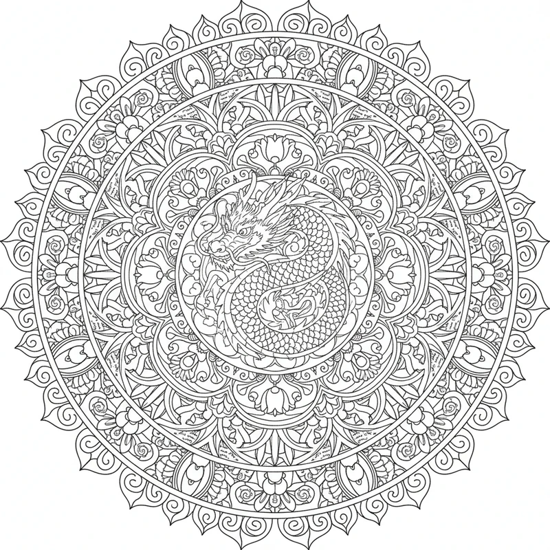 Découvrez ce magnifique mandala dragon à colorier. Un design unique inspiré du thème dragon, parfait pour un moment de détente et de créativité. Les motifs soigneusement élaborés offrent une expérience de coloriage apaisante.