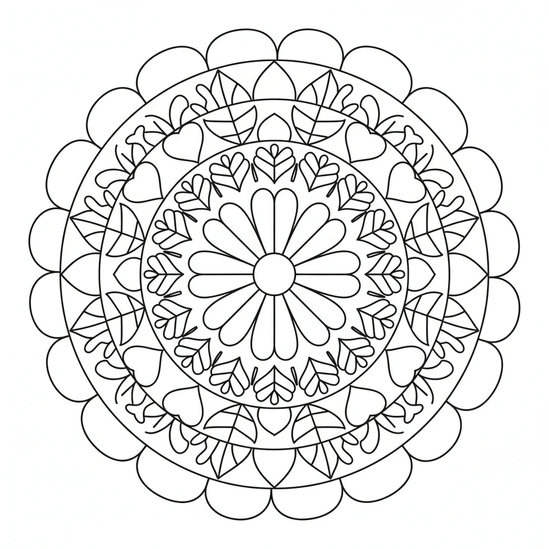 Ce design épuré offre un excellent support pour développer la concentration et la motricité fine. Les lignes claires et les espaces généreux facilitent le coloriage, même pour les plus jeunes. Téléchargez gratuitement ce mandala et profitez d'un moment créatif en famille.